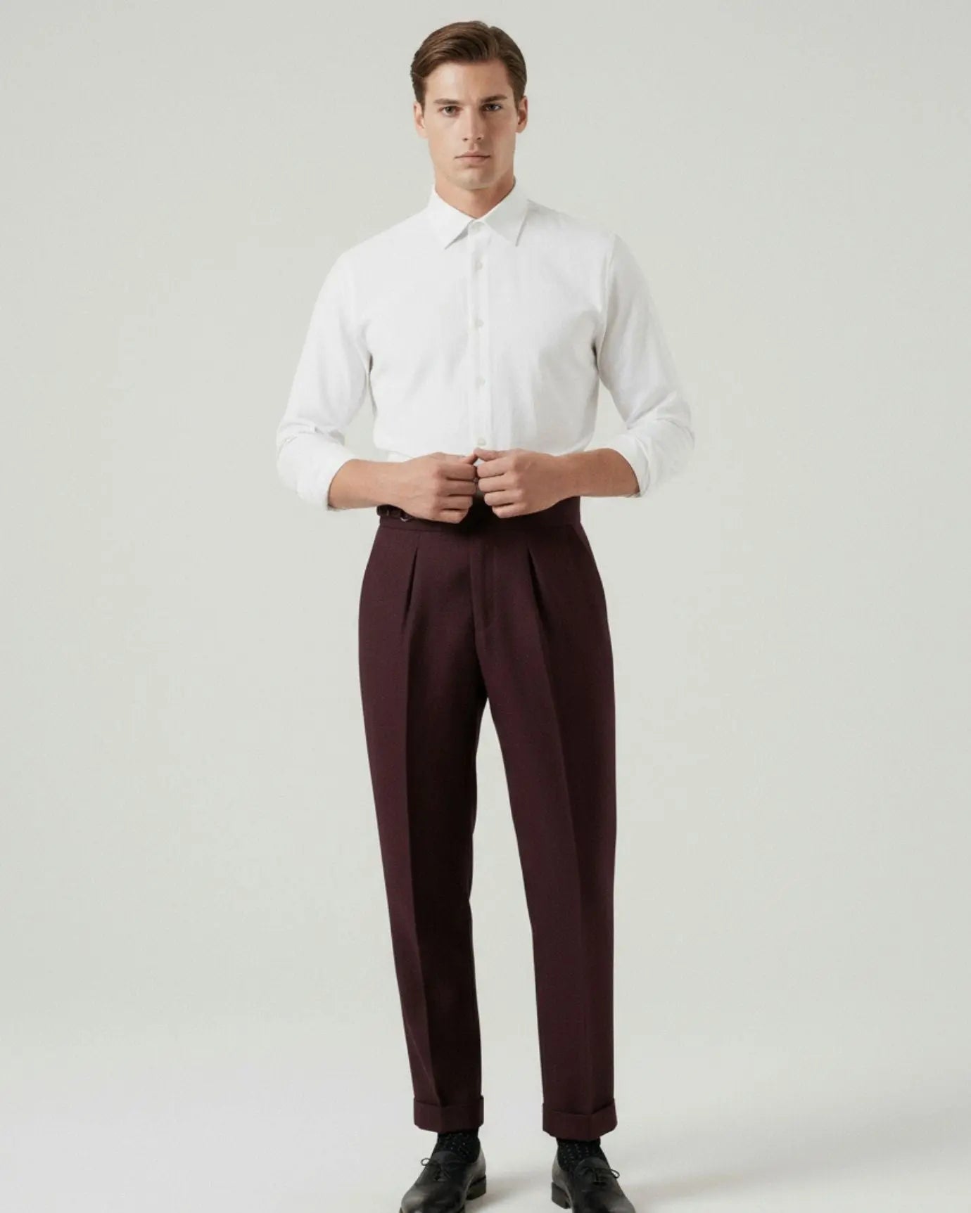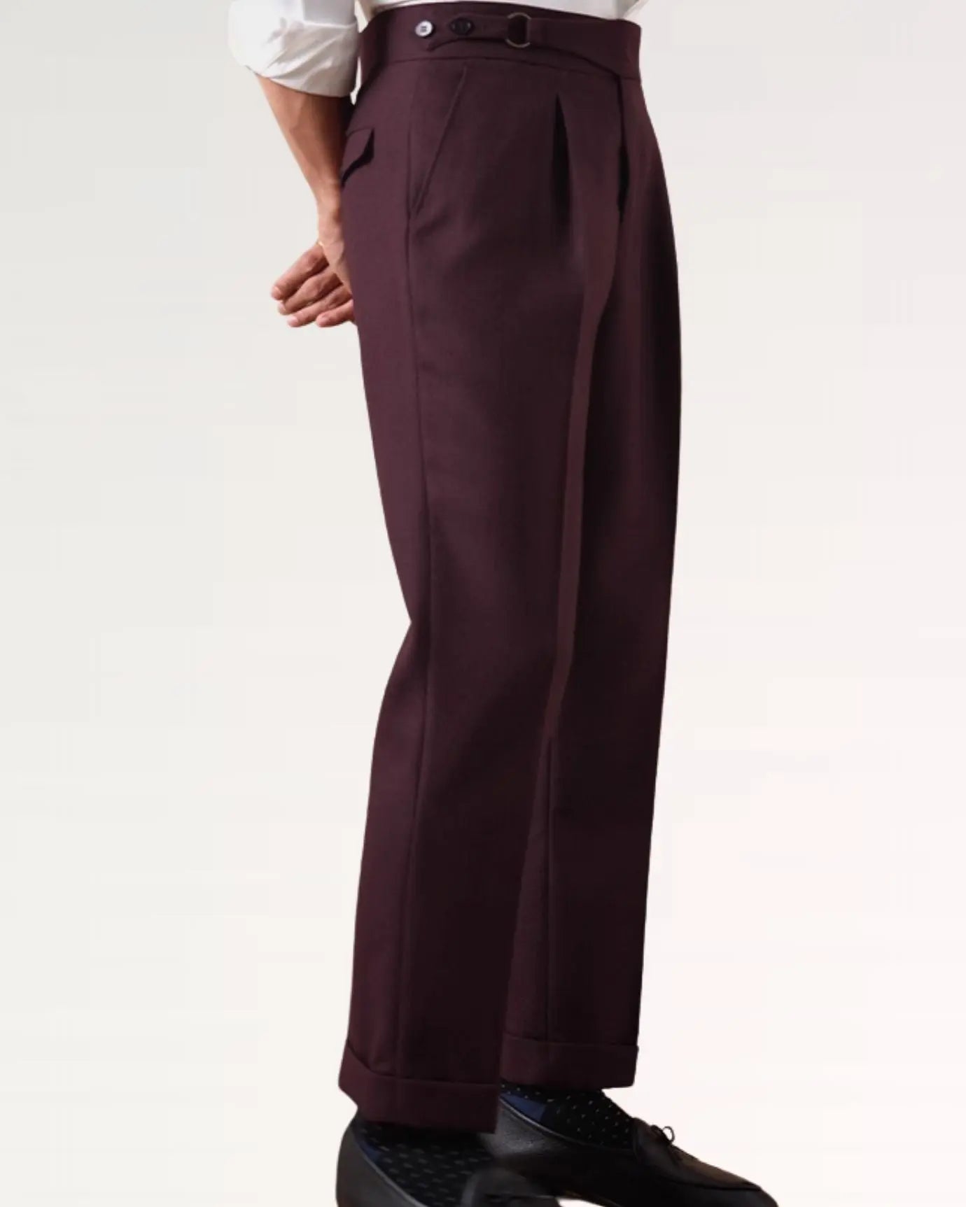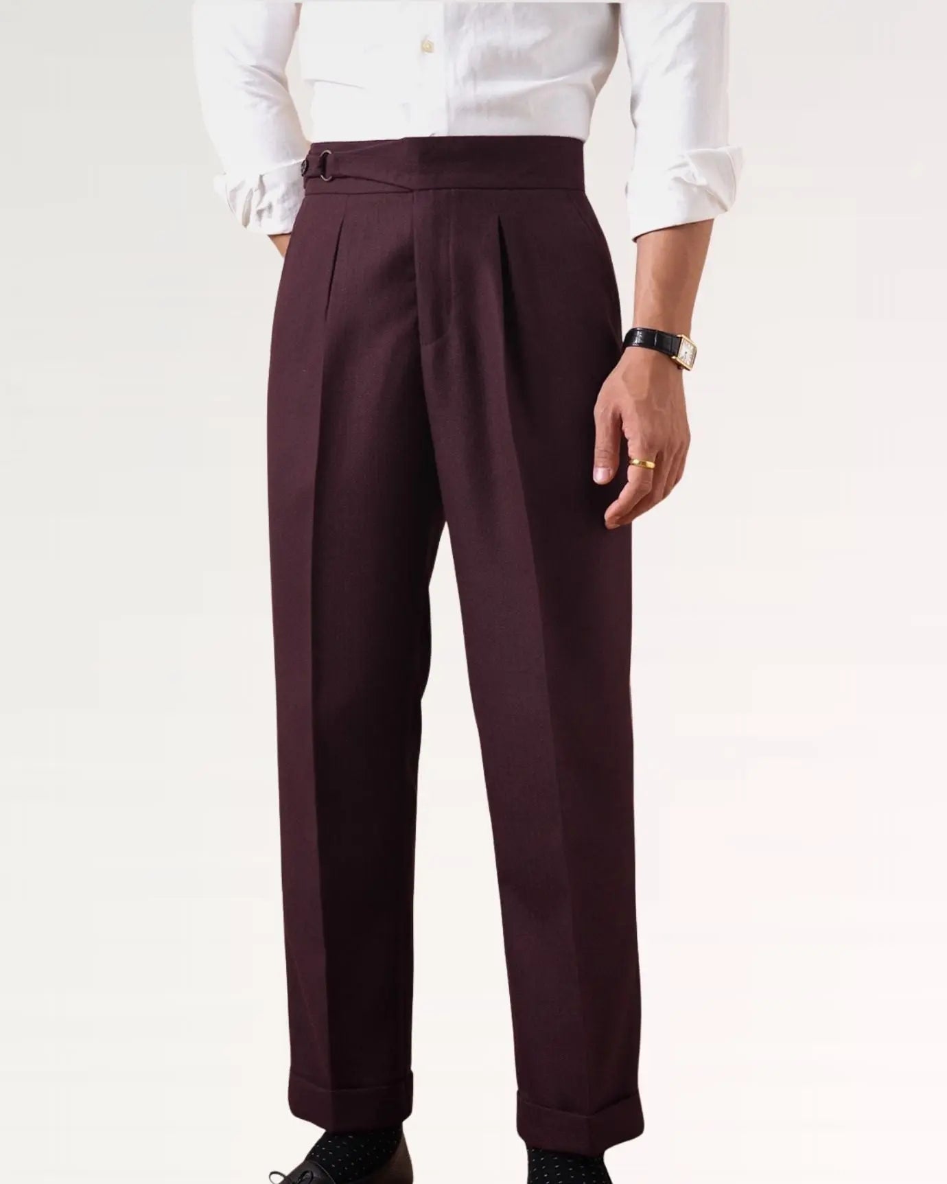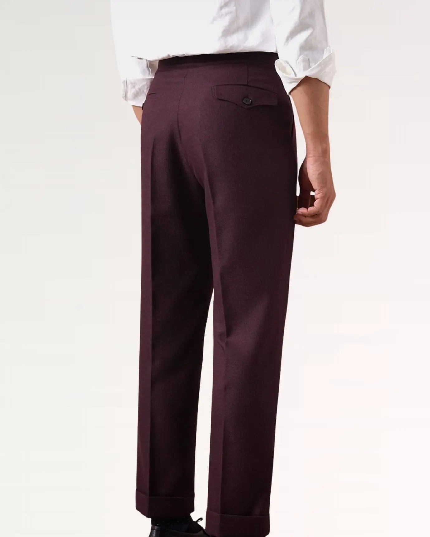 Fernache Non-Iron High Waist Business Trousers – Burgundy Red