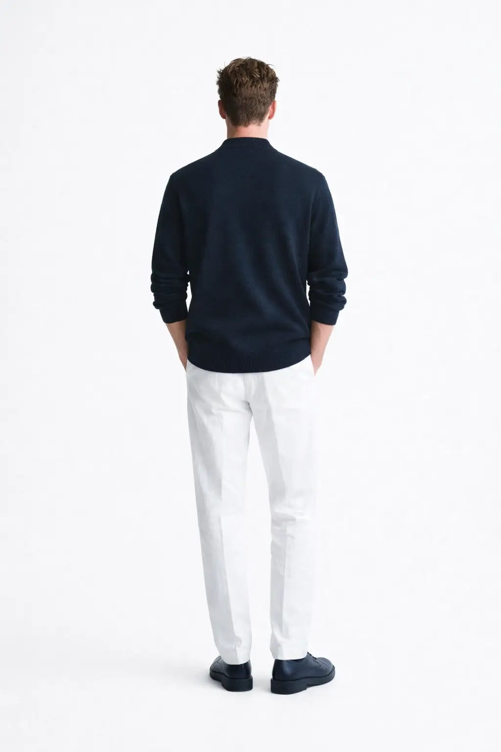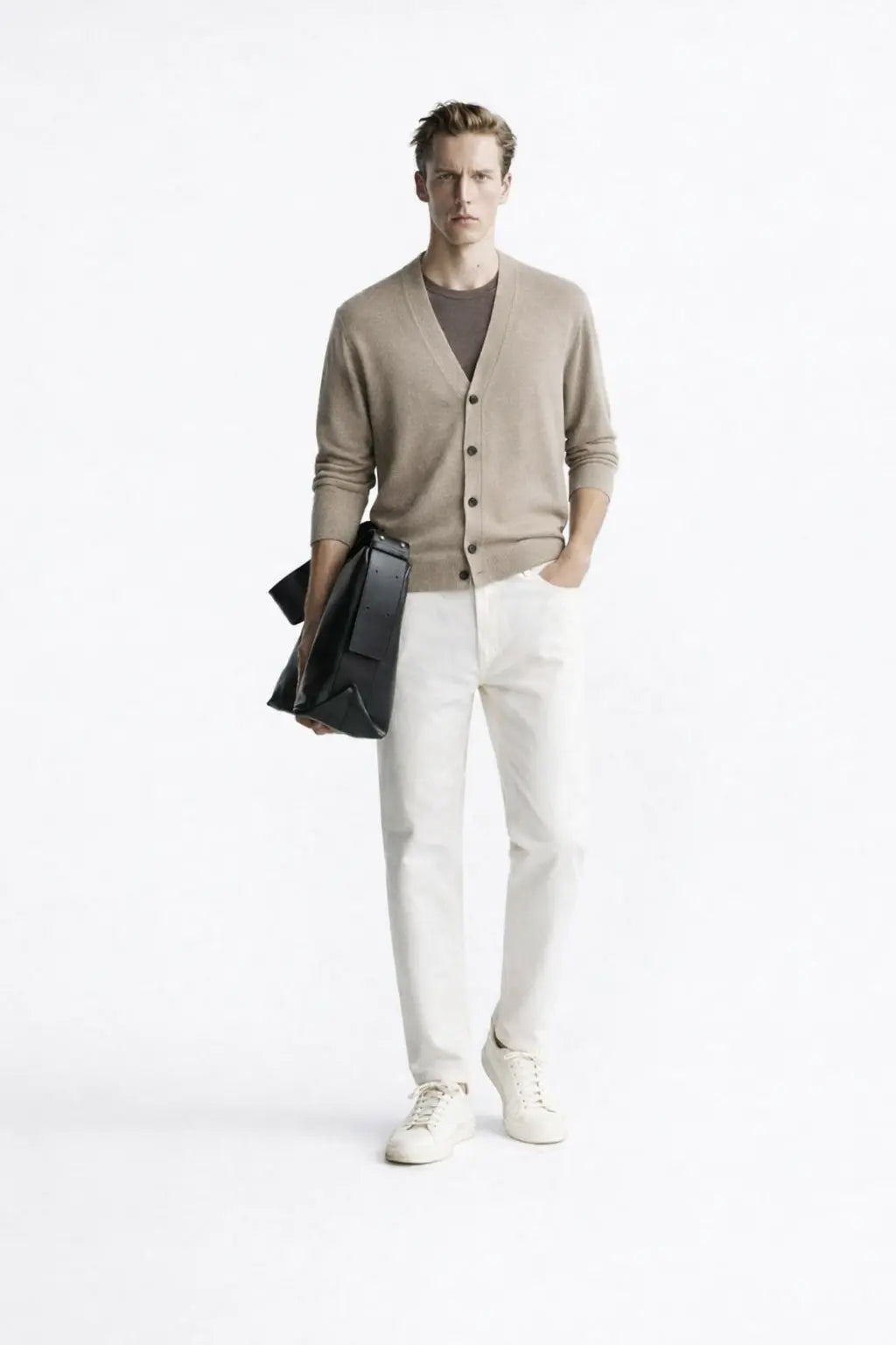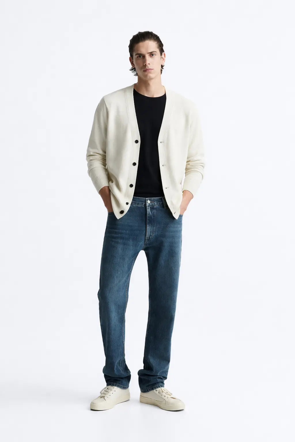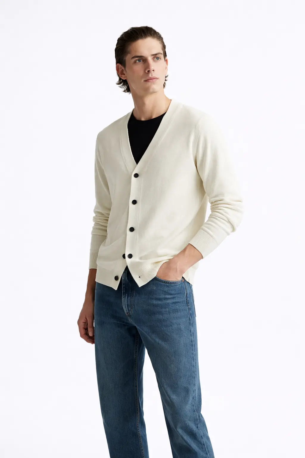 Collar: V-neck for a timeless silhouette