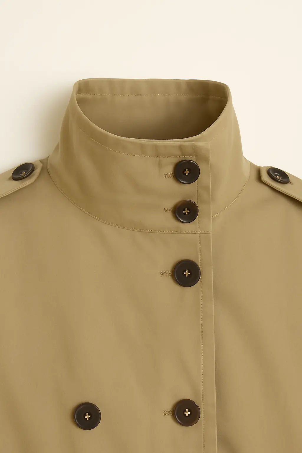 The Éternelle Cape in classic beige is a sophisticated reinterpretation of the French coat. Designed to embody effortless elegance, this piece combines timeless tailoring with modern versatility. Its neutral hue makes it a refined staple that pairs seamlessly with any wardrobe.