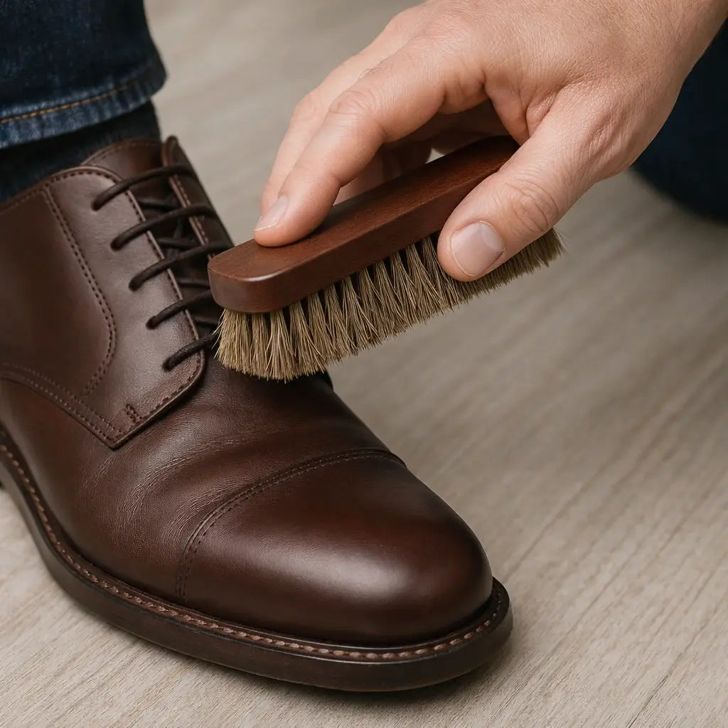 Gardez vos chaussures impeccables grâce à notre brosse à cirage haut de gamme. Fabriquée en crin de cheval 100 % naturel et en bois de hêtre résistant, cette brosse est conçue pour polir, faire briller et entretenir vos chaussures en cuir en douceur, sans les rayer.