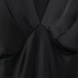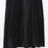 Gjør et inntrykk med Midnight Silkes Dress – en elegant svart silkekjole designet for uforglemmelige kvelder. Laget av glatt, skinnende silke, har denne kjolen en tidløs silhuett som faller vakkert og tilbyr både komfort og eleganse. Perfekt for spesielle anledninger, date-kvelder eller ethvert øyeblikk du ønsker å skinne.