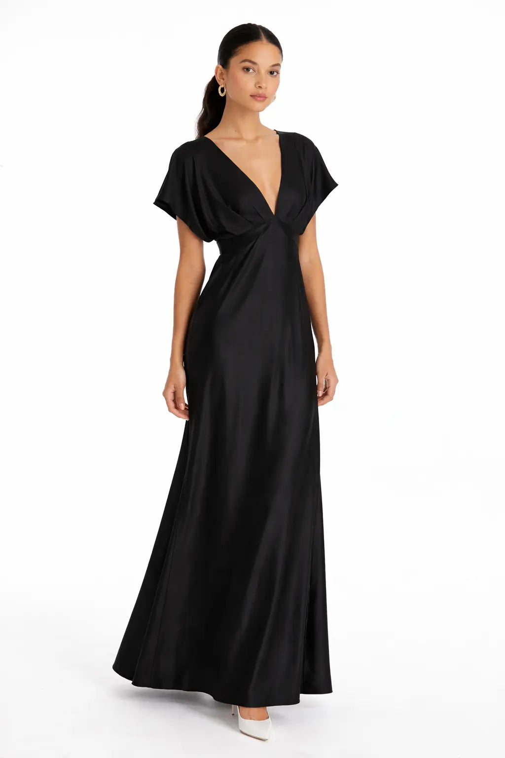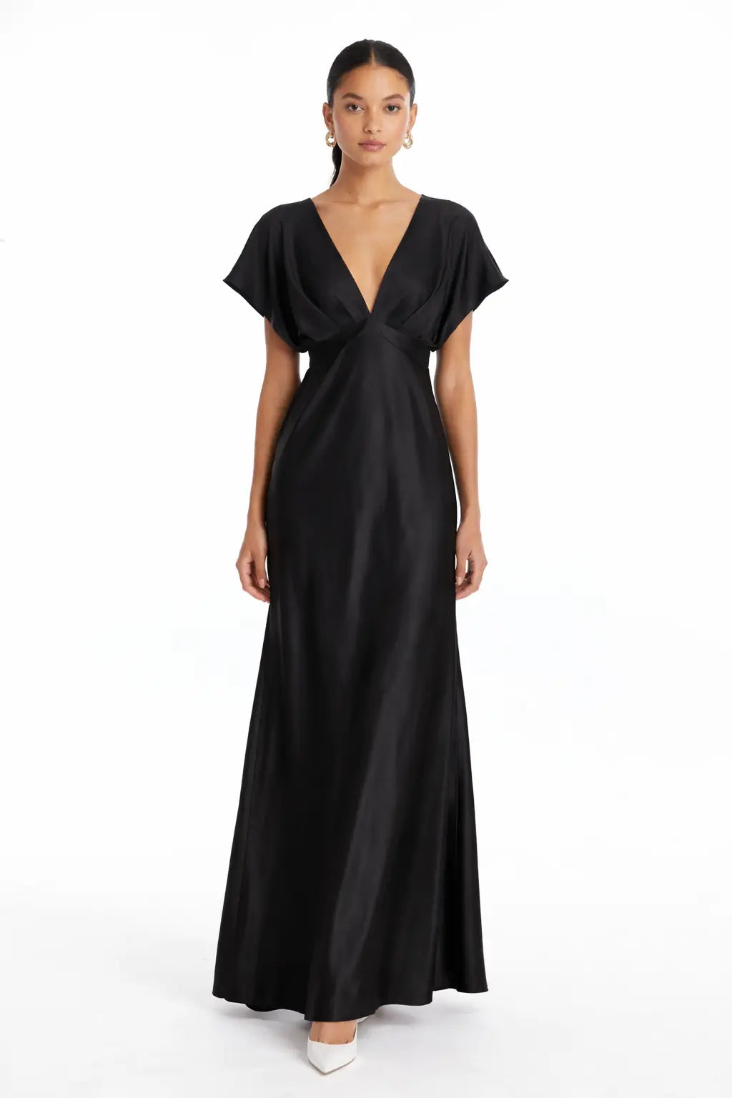 Gjør et inntrykk med Midnight Silkes Dress – en elegant svart silkekjole designet for uforglemmelige kvelder. Laget av glatt, skinnende silke, har denne kjolen en tidløs silhuett som faller vakkert og tilbyr både komfort og eleganse. Perfekt for spesielle anledninger, date-kvelder eller ethvert øyeblikk du ønsker å skinne.