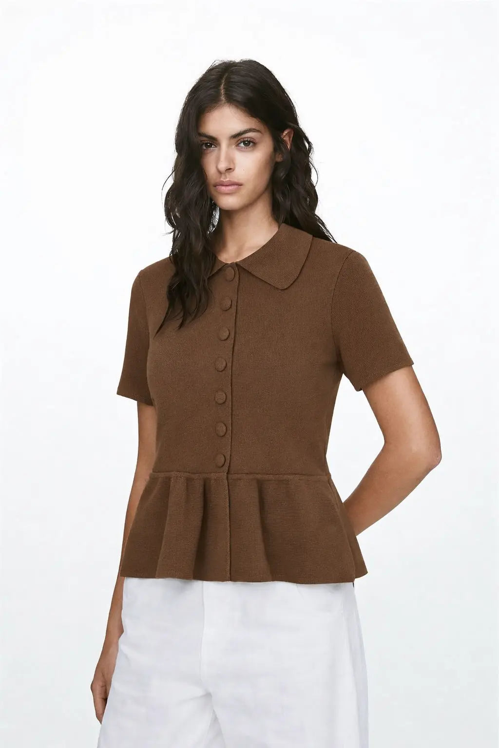 Elevate your everyday look with the Bronze Breeze Top – a timeless piece designed for effortless style and comfort. Crafted from soft, durable polyester, this top combines a flattering regular fit with delicate ruffle detailing for a feminine finish.