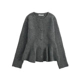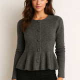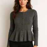 Mjuk, subtil och obehindrat feminin — den Camille Volant Kofta ger din garderob en mild textur och tidlös stil. Tillverkad av en plyschig grå stickning med fina grå knappar som smälter sömlöst in i tyget för en diskret look.