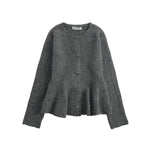 Den mest framträdande detaljen är den mjuka, böljande volangen längs fållen, vilket ger en lekfull men elegant touch som gör att denna kofta skiljer sig från mängden. Perfekt att bära över klänningar eller med jeans, och Camille Volant balanserar komfort med en antydan till romantisk stil.